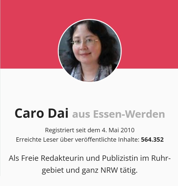 Agentur-Inhaberin, zeitgleich mit dem Agentur-Gründer durch die bundesweite Arbeits-Verwaltung mit Landes-Arbeits-Ämtern aufgrund von Empfehlungen aller Berufs-Verbände und mit nötigen Eignungs-Nachweisen amtlich lizenziert für: a) Deutschland, b) Europa und c) die Welt (der sogenannte „Hollywood-Schein“). All diese Lizenzen – nach den ersten Jahren der Bewährung – seither ebenfalls neu staatlich und wie beim Gründer lebenslang gültig lizensiert. Und Caro Dai ist als CEO seit langem begeisterte und begeisternde Inhaberin dieser Agentur auf gewerblicher Basis.